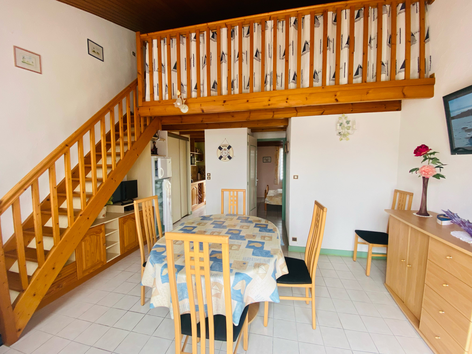 Il se compose d’une agréable pièce à vivre lumineuse, d’une chambre confortable, d’une mezzanine idéale pour un espace nuit supplémentaire ou un coin détente, ainsi que d’un coin kitchenette parfaitement aménagé.